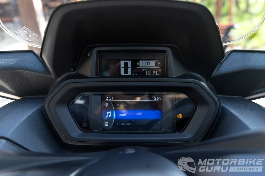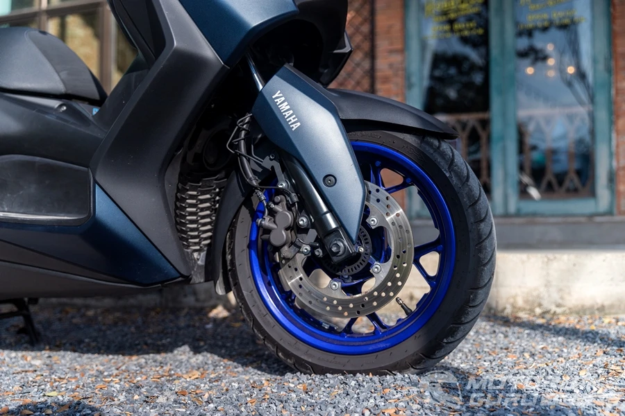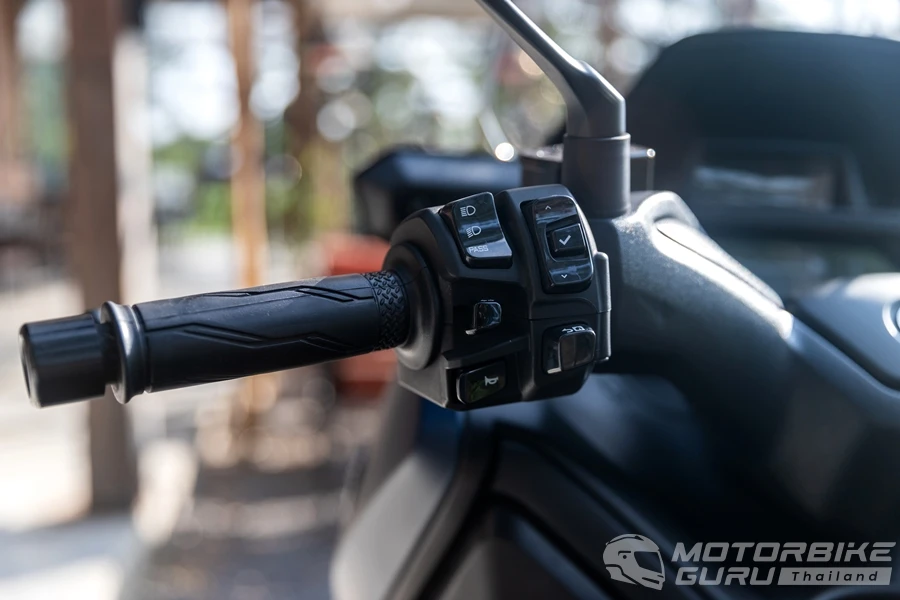 New Yamaha XMAX Connected ปี 2023 ลุคพรีเมียมสปอร์ตตั้งแต่แฟริ่งหน้า ไฟหน้า-ท้าย ดีไซน์ใหม่ สไตล์ “X” ระบบไฟ FULL LED เต็มระบบทั้งคัน หน้าจอแตกต่างจากรุ่นอื่นในคลาสเดียวกันด้วย 2 จอแยก สวิทช์ควบคุมบนแฮนด์บาร์ทั้ง 2 ข้าง มีมากขึ้น ออกแบบดูหรูหราขึ้นด้วย ตัวเบาะปรับเปลี่ยนรายละเอียดใหม่หมดเช่นกัน เดินด้ายโชว์พร้อมปั๊มโลโก้ XMAX แฟริ่งให้ความรู้สึกสปอร์ตทันสมัย มีช่องระบายความร้อนสไตล์สปอร์ต การขี่ทางไกลสบายขึ้นด้วยชิลด์หน้าทรงใหม่ สามารถปรับเลื่อนได้ 2 ระดับ
