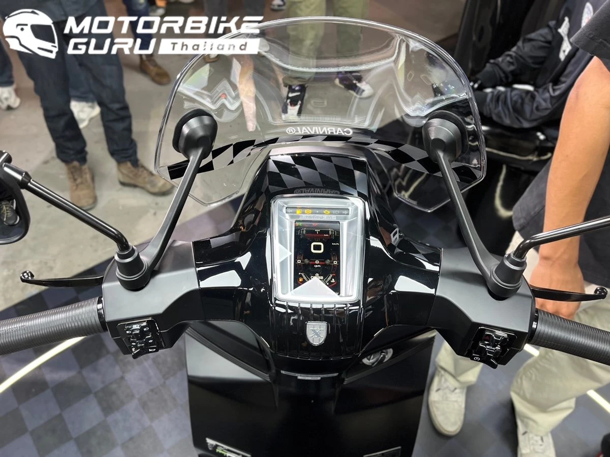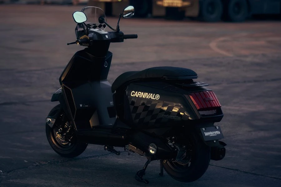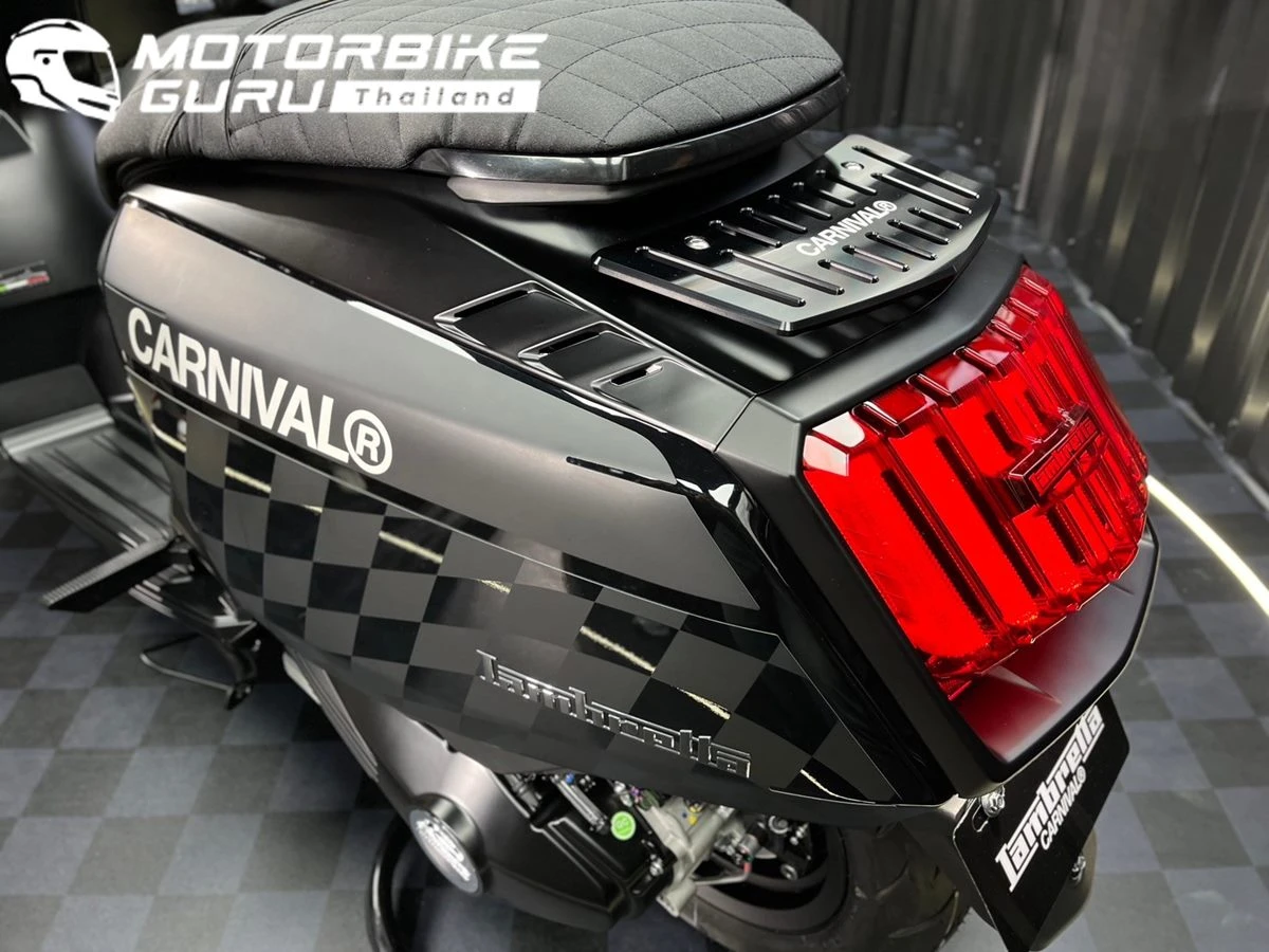พร้อมดีไซน์ Custom ของชุดแต่ง ตะแกรงท้าย Carnival, เบาะนั่ง และ Shield ด้านหน้าลาย Checkerboard สะท้อนความเป็นสตรีทแฟชั่นอย่างแท้จริงในแบบฉบับของ CARNIVAL สีดำสุดเข้มที่ใช้ ทำให้รถรุ่นนี้โดดเด่นไม่เหมือนใคร ทั้งยังคงเอกลักษณ์ของ Lambretta ไว้อย่างลงตัว