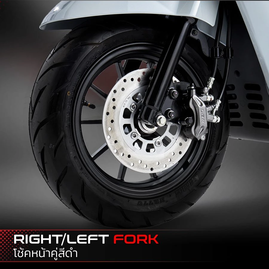 ระบบกันสะเทือนหน้าสีดำใหม่แบบ เทเลสโคปิค (Right / Left Fork) พร้อมโช๊คอัพหลังแบบเดี่ยว ที่สามารถปรับ Preload ได้ถึง 5 ระดับ และมั่นใจในการหยุดรถด้วยดิสก์เบรกหน้า - หลังที่มาพร้อมระบบ SBS (Shared Brake System) เป็นการกระจายแรงเบรกทั้งหน้าและหลังให้สัมพันธ์กัน ทำให้ผู้ขับขี่หยุดรถได้อย่างมั่นใจ
