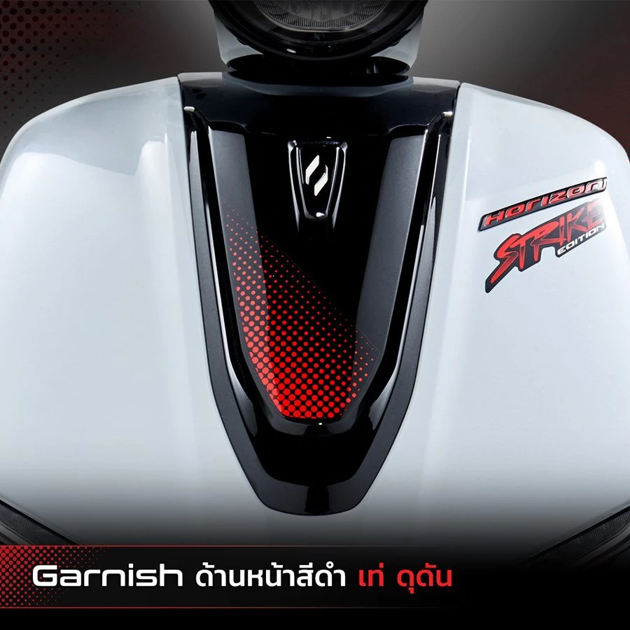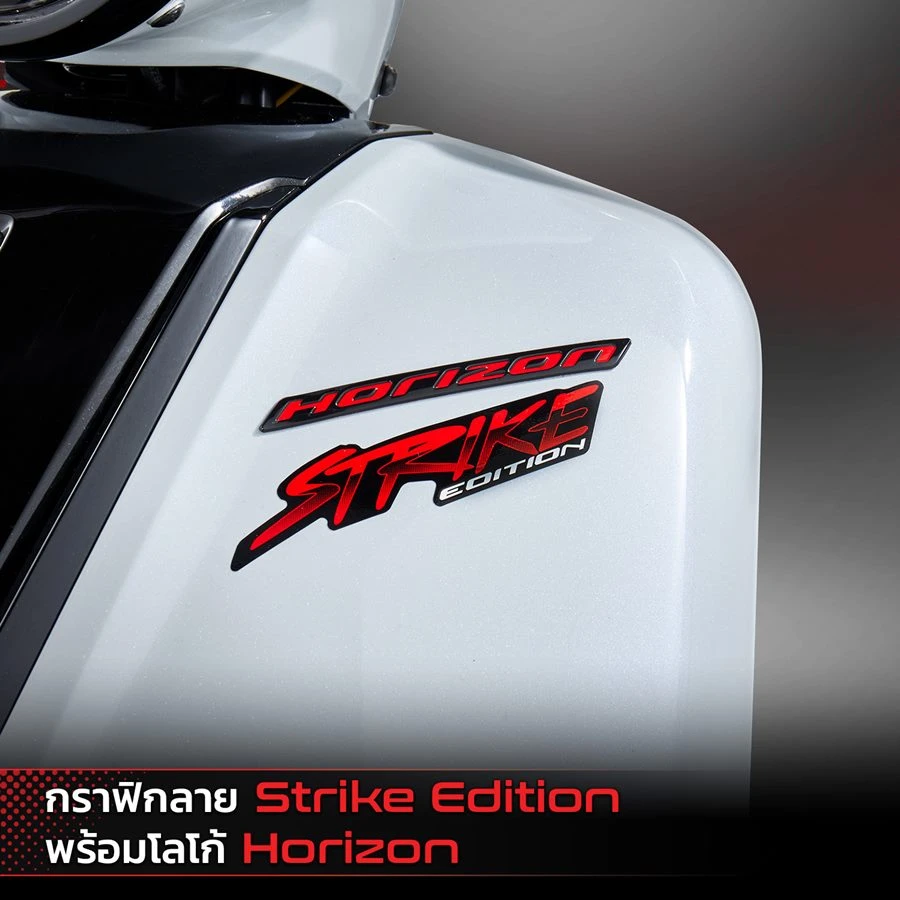การออกแบบดีไซน์กราฟิกใหม่ทั้งคันเพื่อผู้ใช้งานรถ Premium Scooter ที่ชื่นชอบและหลงใหลในความสปอร์ต ด้วยการออกแบบกราฟิกตามจุดต่าง ๆ อาทิ ป้าย Emblem ชื่อรุ่น Horizon แบบตัวอักษรนูนทั้งด้านหน้า และ ด้านข้างของตัวรถเพิ่มความพรีเมี่ยมในทุกมิติ รวมไปถึง Sticker Strike Edition ที่บ่งบอกถึงความพิเศษโดดเด่นมากกว่าใคร