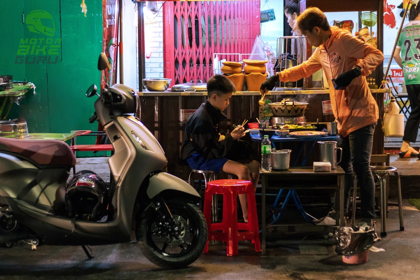 ปิดท้ายกับความอร่อยมื้อเย็น เป็นโบนัสแทร็คของวัน กับร้านครัวนางไอ่ หมูกระทะ ใกล้ท่าน้ำสวัสดี จอดรถมอเตอร์ไซค์ได้ ตรงพื้นที่จอดแยกหน้าร้าน มาถึงท้ายวันแบตเตอรี่สมาร์ทโฟน ก็เหลือน้อยมาก เพราะเพลินไปกับการถ่ายรูปมาทั้งวัน แต่ดีที่ Yamaha Grand Filano Hybrid Connected มีพอร์ต USB Type A แค่พกสายมาก็เสียบชาร์จได้ ทั้งตอนขี่ และเปิดสวิตช์ออน