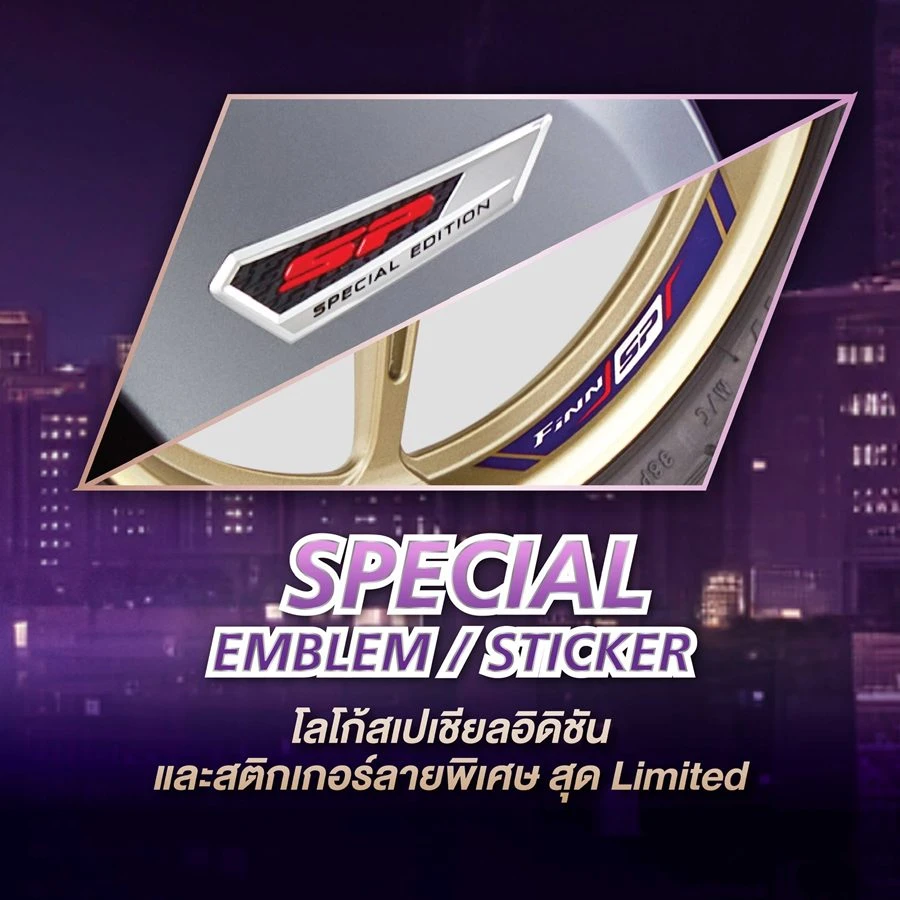 สำหรับ New Yamaha FINN Special Edition มาพร้อมกับสีสันใหม่โดดเด่น สปอร์ตพรีเมียม พร้อมโลโก้ Special Edition บนตัวรถที่ออกแบบมาเฉพาะรุ่น และสติกเกอร์ลายพิเศษบนล้อแม็กหน้า - หลัง สุด LIMITED เพิ่มสไตล์การขับขี่ให้โดดเด่นอย่างลงตัว