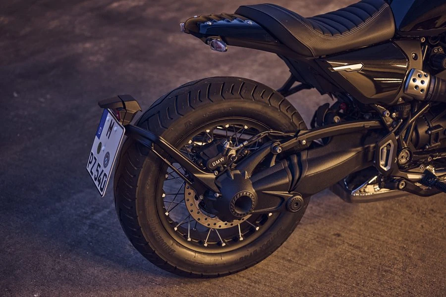 เมื่อมองจากด้านข้าง จะเห็นได้ว่า R 12 nineT ใหม่ มีเส้นสายที่ดูยกสูงขึ้น ซึ่งเป็นผลจากการจัดวางตำแหน่งของตัวถังอลูมิเนียมที่ด้านหน้า เบาะนั่ง และท้ายรถที่ยกสูงขึ้นเล็กน้อย