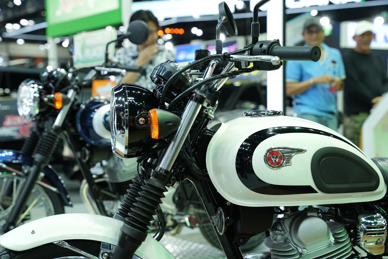 kawasaki W230 ฉลองครบรอบความเป็นตำนานมากว่า 60 ปี ของแบรนด์ W โดยทั้ง W230 และ Meguro S1 ได้เปิดตัวเป็นครั้งแรกของโลกในประเทศไทยไปเมื่อเดือนกันยายนที่ผ่านมา และในงานมหกรรมยานยนต์ครั้งนี้ คาวาซากิภาคภูมิใจ ที่จะนำเสนอสีใหม่ของ W230 เป็นครั้งแรกในไทย กับสี Metallic Ocean Blue/Ebony สีน้ำเงินมหาสมุทรสุดเข้ม ให้ W230 กลายเป็นรถที่เท่ยิ่งกว่าเคย