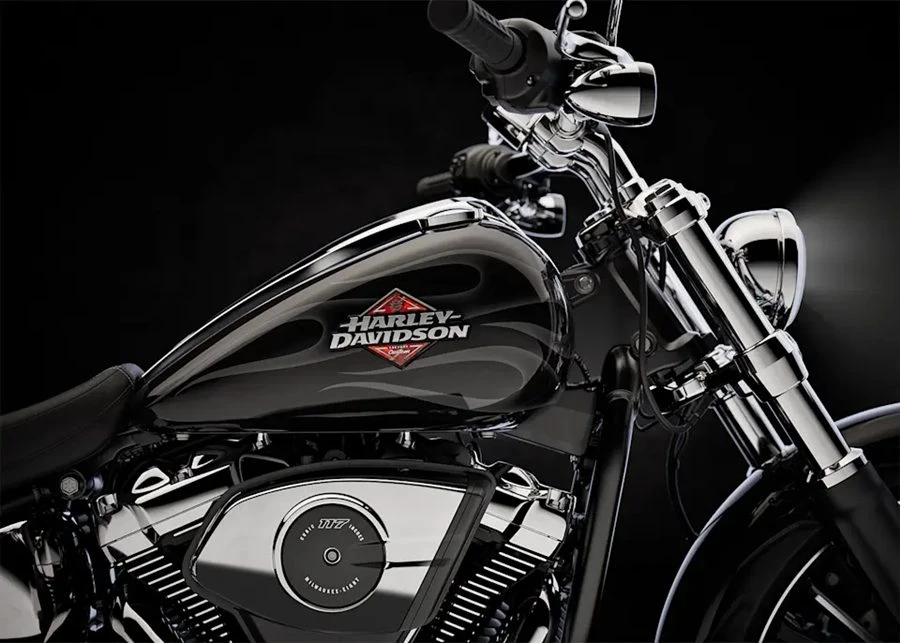 - ลายเส้น Pinstripe (Paint Trajectory Pinstriping) ดีไซน์ใหม่ มีให้เลือกทุกเฉดสี รวมถึงสีแบบ ทูโทน Whiskey Fire ตัดกับ Vivid Black โดดเด่นด้วยลาย “Scallop” สไตล์ย้อนยุคบริเวณถังน้ำมัน และลายแยกบนบังโคลนหน้า-หลัง ซึ่งได้แรงบันดาลใจมาจากดีไซน์ในยุค 1930s และ 1950s เสริมความคลาสสิกไปอีกระดับด้วยโลโก้ถังน้ำมันโครเมียมทรงเพชร พร้อมพื้นหลังลายรัศมีสีฟ้าแบบอะคริลิก ที่สะท้อนถึงตราสัญลักษณ์สุดคลาสสิกของ Harley-Davidson ในช่วงปลายยุค 1950s