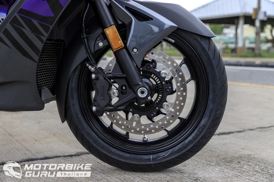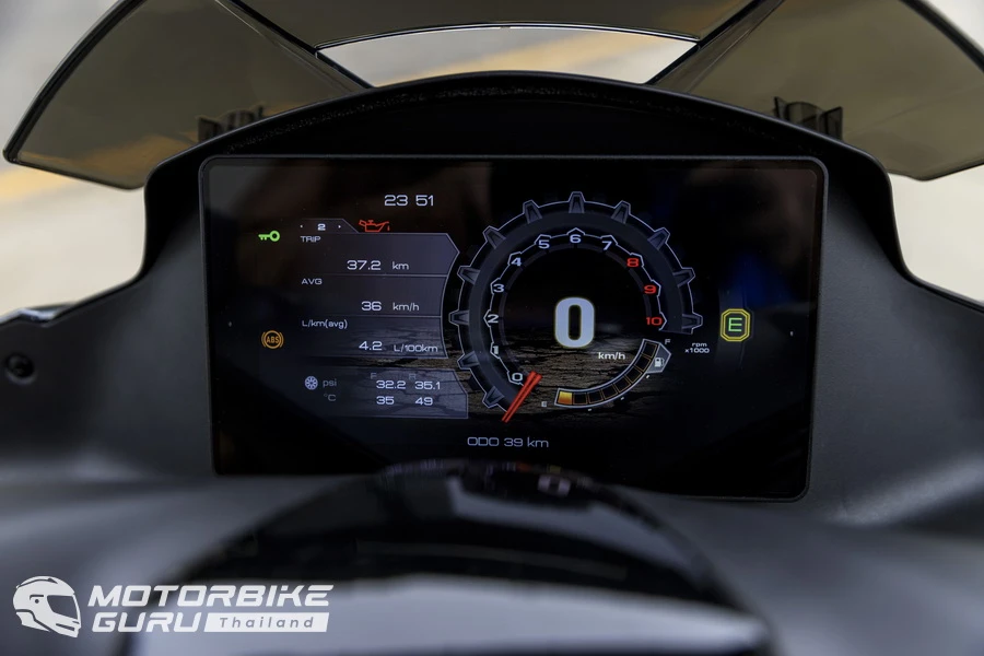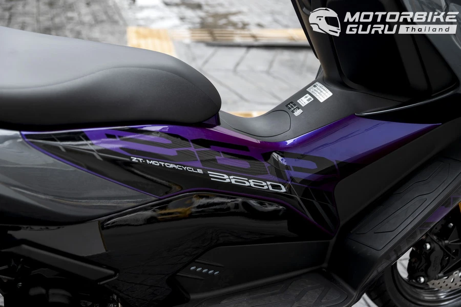 เพื่อสัมผัสถึงพลังเครื่องยนต์ขนาด 368 ซีซี รุ่นใหม่ล่าสุด ให้พละกำลังแบบ High Compression รอบต้นแรงทันใจ ความเร็วไหลไปได้เรื่อยๆ ไม่ต่ำกว่า 160 กม./ชม. ในโหมด Sport ไปได้อย่างมั่นใจในทุกความเร็ว จนมาจอดเก็บภาพอีกครั้งเพื่อบันทึกรายละเอียดต่างๆ ของตัวรถ แต่พบว่าตัวรถเข็นขยับจอดง่ายเพราะน้ำหนักรถเพียง 162 กก. (น้ำหนักรวมน้ำมันเต็มถังที่ 175 กก.) จุดเด่นเริ่มจากระบบไฟส่องสว่าง LED ทั้งคัน ความอเนกประสงค์กับพื้นที่ใต้เบาะที่ใช้งานได้สะดวก เก็บหมวกกันน็อคได้ และเก๊ะคู่หน้าที่ด้านซ้ายมี 2 ช่องจ่ายไฟทั้งแบบ USB-A และ C ด้านขวาเก็บของชิ้นเล็กหยิบได้สะดวกมือ ตรงกลางแฮนด์มีขอเกี่ยวที่พับซ่อนไว้สามารถเปิดออกมาเกี่ยวถุงได้สะดวก