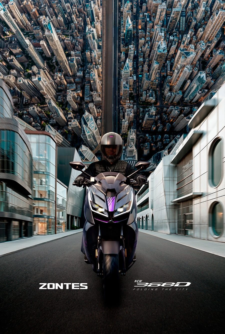 ถ้า ”รถติด” คือศัตรูอันดับหนึ่งของชีวิตในเมืองใหญ่ ZONTES 368D คืออาวุธใหม่ที่จะช่วย “พับเมือง” ให้สั้นลงในทุกคันเร่ง สมกับคอนเซปต์ “Folding The City” สกู๊ตเตอร์สปอร์ตพรีเมียมเจนใหม่ ในดีไซน์สปอร์ตสุดเร้าใจ ที่มาพร้อม ฟังก์ชันจัดเต็ม เทคโนโลยีล้ำ ทันสมัย มิติใหม่การขับขี่ ที่มอบความคล่องตัวสูง ด้วยน้ำหนักตัวที่เบาลง
