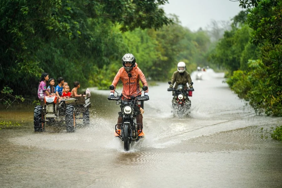 - เส้นทางมีน้ำท่วมสูง รถ C125 ต้องขนขึ้นรถปิกอัพ