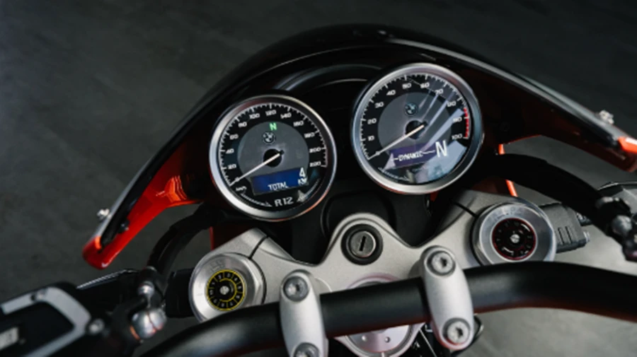 องค์ประกอบที่ทำให้ R 90 S ดั้งเดิมมีชื่อเสียงคือฝาครอบไฟหน้าที่ติดตั้งอยู่บนแฮนด์รถ พร้อมกระจกบังลมแบบย้อมสี และทั้งสองชิ่นส่วนก็เป็นไฮไลท์ในงานออกแบบของ R 12 S ใหม่ เข้ากันกับเอกลักษณ์สุดคลาสสิกของ R 90 S ที่สะท้อนอยู่ในส่วนอื่นของตัวรถ ไม่ว่าจะเป็นตะเข็บเบาะนั่งที่เย็บด้วยด้ายสีตัดกับผิวเบาะ หรือสีส้ม Lavaorange metallic ที่ถอดแบบมาจากสีส้ม Daytona Orange ที่แฟนๆ มอเตอร์ราดจดจำกันได้จาก R 90 S รุ่นปี 1975