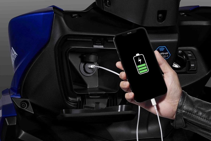 Utility Box ที่เก็บของขนาดใหญ่ 25 ลิตร พกพาสัมภาระ หรืออุปกรณ์อื่นๆ รวมทั้งสามารถเก็บหมวกกันน็อกแบบเต็มใบได้ และ New!! Charging Socket USB Type-C ช่องเสียบต่อชาร์จสมาร์ทโฟนแบบ USB Type-C พร้อมช่องเก็บของด้านหน้าขนาดใหญ่พร้อมฝาปิด อีกทั้งยังมาพร้อมเทคโนโลยีสุดล้ำ SMART TECHNOLOGY อย่าง Y-Connect Application แอปพลิเคชันที่เชื่อมต่อข้อมูลรถผ่าน CCU ช่วยให้สามารถรับรู้ข้อมูลต่างๆ และการขับขี่ของรถได้บนมือถืออย่างง่ายดาย ด้วย 9 ฟังก์ชัน ในการใช้งานอย่างครบครัน