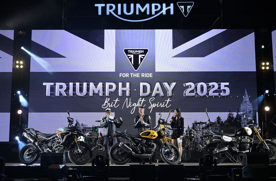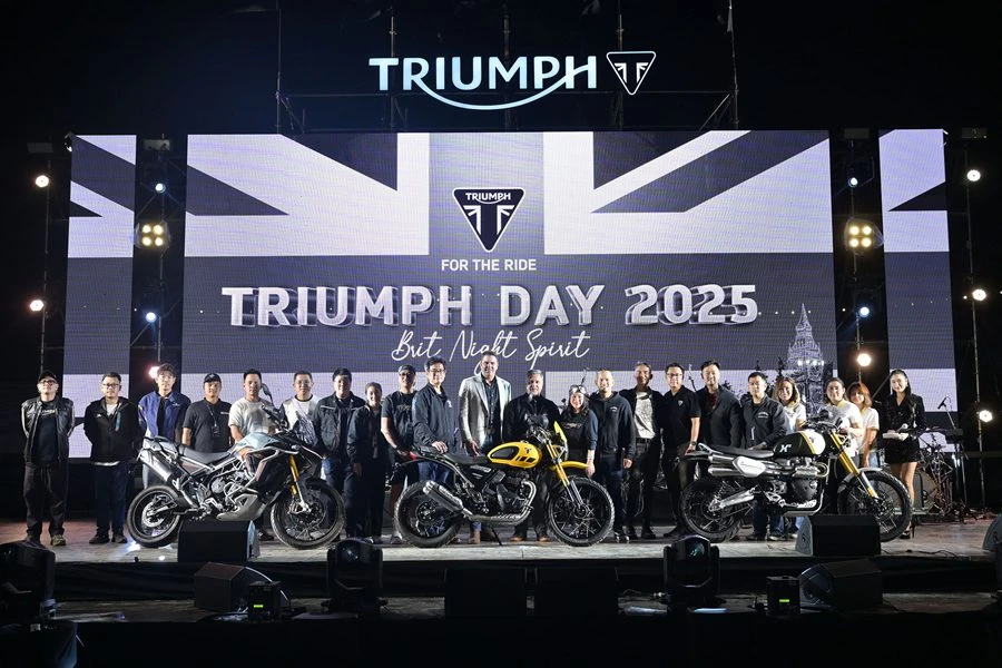 ไทรอัมพ์ มอเตอร์ไซเคิลส์ ผู้ผลิตรถจักรยานยนต์พรีเมียมสัญชาติอังกฤษ จัดงาน ไทรอัมพ์ เดย์ 2025 (Triumph Day 2025: Brit Night Spirit) คอมมูนิตี้สุดเอ็กซ์คลูซีฟสำหรับแฟนพันธุ์แท้ ไทรอัมพ์ ที่ให้ทุกคนได้มาพบปะ พูดคุย และแลกเปลี่ยนประสบการณ์รวมถึงความประทับใจกับผู้ขับขี่ไทรอัมพ์จากทั่วประเทศ พร้อมเฉลิมฉลองความภาคภูมิใจไปด้วยกัน ผ่านการชมนิทรรศการรถจักรยานยนต์ไทรอัมพ์หลากหลายรุ่นตั้งแต่อดีตจนถึงปัจจุบันที่มาพร้อมเรื่องราวและแรงบันดาลใจ รวมถึงรับชมการแสดงจากวงดนตรีชื่อดังและดีเจที่มาสร้างสีสันตลอดทั้งงาน โดยภายในงานมีไฮไลต์สำคัญอยู่ที่การเปิดตัวรถจักรยานยนต์รุ่นใหม่ล่าสุด ได้แก่ Scrambler 400 XC, Scrambler 1200 XE, Tiger 900 Alpine Edition และ Tiger 900 Desert Edition อย่างเป็นทางการครั้งแรกในประเทศไทย ทั้งหมดนี้เพื่อส่งมอบประสบการณ์ในค่ำคืนสุดพิเศษแก่ผู้ร่วมงานทุกคน ณ Issara Estates Winery อำเภอมวกเหล็ก จังหวัดสระบุรี