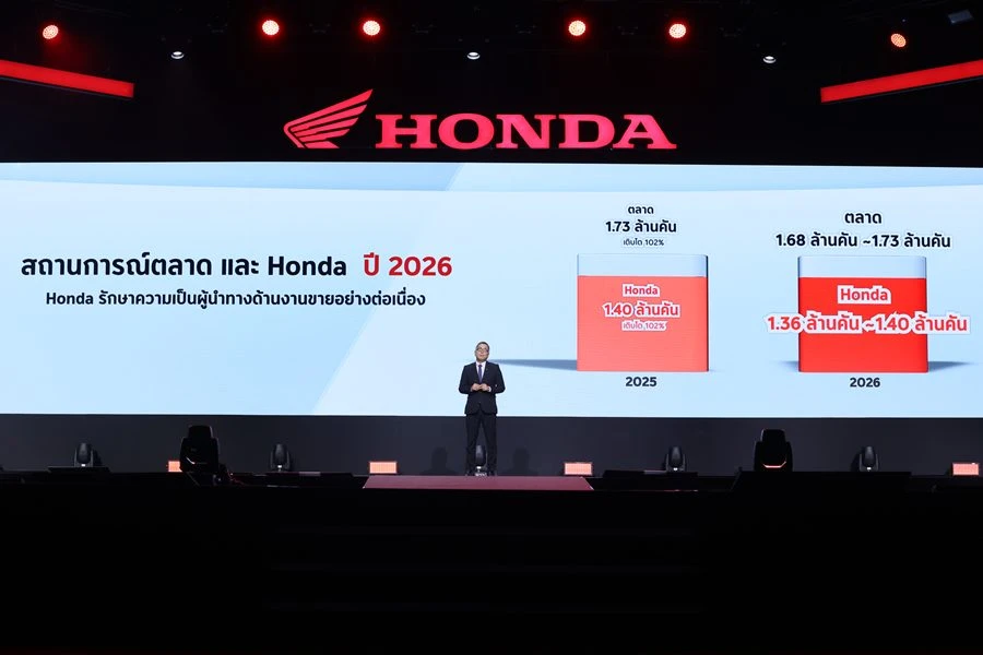 มร.ยูอิจิ ชิมิซุ ประธานกรรมการบริหาร บริษัท ไทยฮอนด้า จำกัด กล่าวว่า “ไทยฮอนด้าให้ความสำคัญกับการพัฒนาผลิตภัณฑ์ บริการ และเทคโนโลยีอย่างต่อเนื่อง เพื่อรองรับความต้องการที่หลากหลายของผู้ใช้งานในชีวิตประจำวัน ประเทศไทยถือเป็นหนึ่งในตลาดยุทธศาสตร์ที่สำคัญของฮอนด้าในภูมิภาคเอเชีย และเป็นศูนย์กลางหลักของธุรกิจรถจักรยานยนต์ในระดับภูมิภาค ในปี 2025 ที่ผ่านมา ตลาดรถจักรยานยนต์ไทยโดยรวมอยู่ที่ 1.73 ล้านคัน ไทยฮอนด้าสามารถสร้างผลงานได้อย่างแข็งแกร่ง ด้วยยอดจำหน่ายรถจักรยานยนต์กว่า 1.40 ล้านคัน เติบโต 102% เมื่อเทียบกับปีก่อนหน้า และครองตำแหน่งผู้นำตลาดรถจักรยานยนต์ในประเทศไทยอย่างต่อเนื่องเป็นปีที่ 37 ความสำเร็จดังกล่าวสะท้อนถึงความแข็งแกร่ง และการสนับสนุนอย่างใกล้ชิดจากเครือข่ายผู้จำหน่ายทั่วประเทศ”