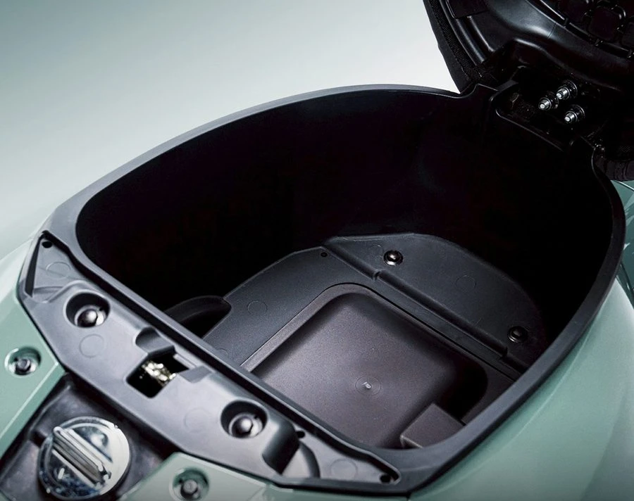 ช่องเก็บของอเนกประสงค์ด้านหน้าคนขับ ที่มีช่องจ่ายไฟสำรองแบบ USB ถึง 2 ช่อง สะดวก ง่าย ต่อการใช้งาน พร้อมกล่องเก็บของใต้เบาะที่สามารถใส่หมวกกันน็อกแบบครึ่งใบ และของใช้อื่น ๆ อย่างเต็มที่