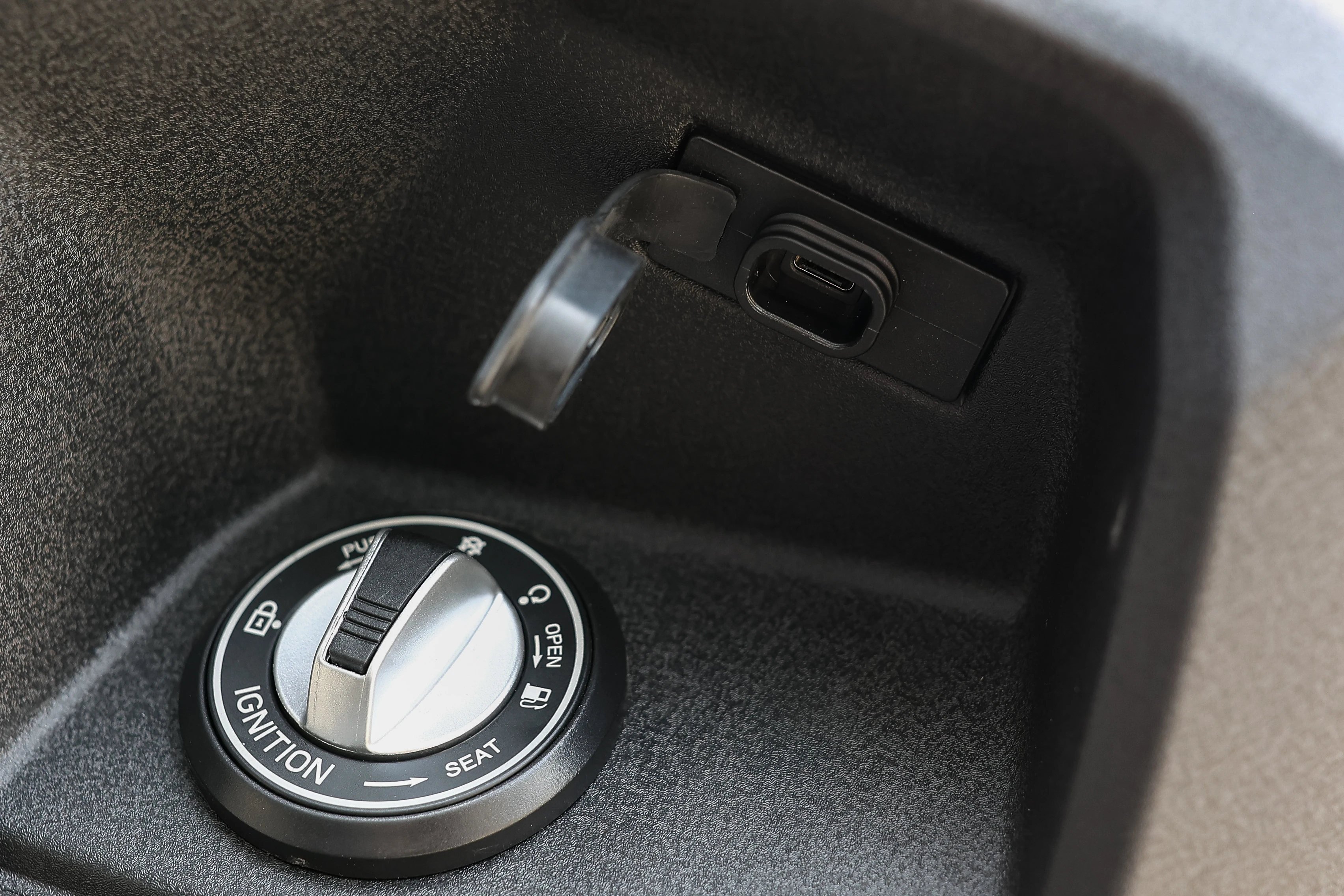 สวิตช์กุญแจแบบ Smart Key พกติดตัว ในระยะ 1.5 เมตร บิดสวิตช์ติดเครื่องได้เลย และในตัวสวิตช์ยังใช้บิดไปทางขวาเปิดฝาถังน้ำมัน และไปทางซ้ายเปิดเบาะสำหรับเก็บของ ซึ่งกล่องเก็บของใต้เบาะใหญ่พอที่จะใส่หมวกกันน็อกแบบครึ่งใบได้สบายมากๆ ครั้งนี้แก้มใส่กระเป๋าสะพายรวมไปด้วยเลย