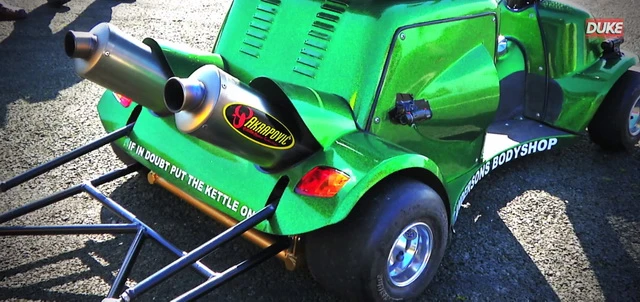 มร. เดวิด แอนเดอร์สัน และ มร. แมทธิว ไฮน์ 2 หนุ่ม จาก ANDERSONS BODYSHOP ร่วมกันทำโปรเจคความเร็วสุดแปลกแต่เร้าใจ ด้วยการดัดแปลงรถสกู๊ตเตอร์ตัดหญ้าให้แรงแบบตัวแข่งแดร็ก โดยนำรถสกู๊ตเตอร์ตัดหญ้าที่เดิมออกแบบให้วิ่งได้เร็วสุดเพียง 12.87 กม./ชม. ด้วยพื้นฐานเครื่องยนต์ซูซูกิ 4 สูบ 80 แรงม้า ระบายความร้อนด้วยน้ำมาใช้ เนื่องจากเฟรมและยางค่อนข้างแย่ จึงมีการออกแบบเฟรมใหม่ พร้อมติดตั้งล้อ-ยางของรถโกคาร์ท และเพิ่มแฟร์ริ่งสวยๆ ให้ดูดี จนไม่เหลือเค้าโครงรถสกู๊ตเตอร์ตัดหญ้าเก่าๆ และพร้อมวิ่งทำสถิติโลก