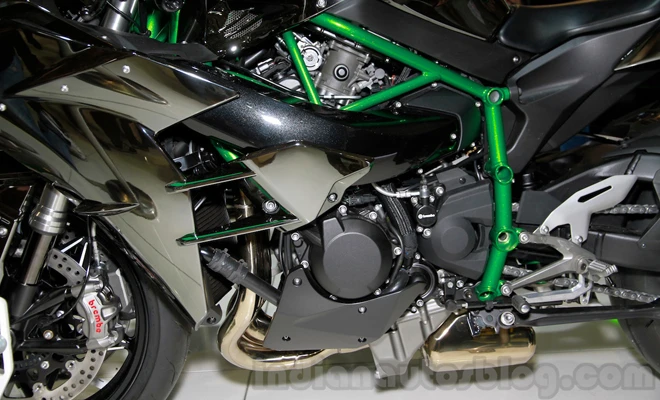 Kawasaki Ninja H2 เปิดตัวในอินเดียเมื่อเดือนเมษายน ปี 2015 เครื่องยนต์เป็น liquid-cooled ขนาด 998 ซีซี 4 สูบ พลัง 200 แรงม้า ที่ 11,000 rpm และ 210 แรงม้าเมื่อใส่ Ram Air แรงบิด 133.5 นิวตัน-เมตร ที่ 10,500 รอบต่อนาที พร้อมเกียร์ 6 สปีด