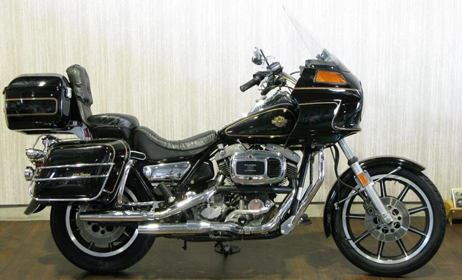 Sport Glide เป็นรุ่นพัฒนาต่อยอดจาก Super Glide ซึ่งใช้แฟริ่งหน้าเป็น frame-mounted กระจกกันลมแบบสูง และกล่องใส่ของข้างรถ Sport Glide รุ่นแรกประกอบด้วยเครื่องยนต์ V4 สูบ ระบายความร้อนด้วยน้ำ หม้อน้ำขนาดใหญ่อากาศที่ผ่านเข้าทางแฟริ่งด้านหน้าซึ่งรับได้แสงเล็กน้อย ถูกเปลี่ยนให้เป็นลมเย็นและส่งผ่านไปยังหม้อน้ำ แต่ทาง Harley-Davidson กลับต้องยกเลิกการผลิตรุ่น FXRT เพราะเงินทุนไม่เพียงพอ