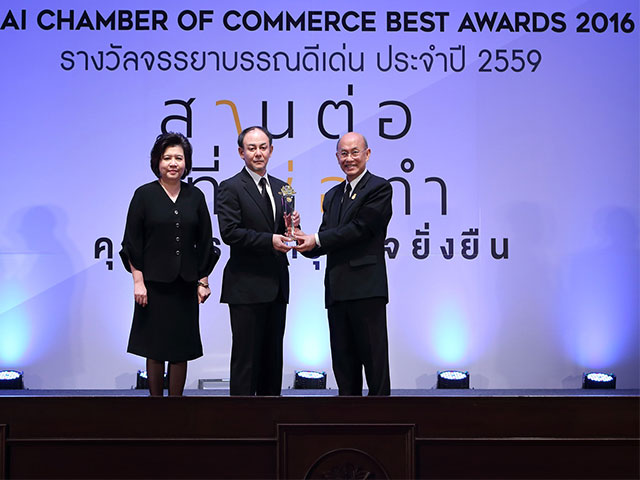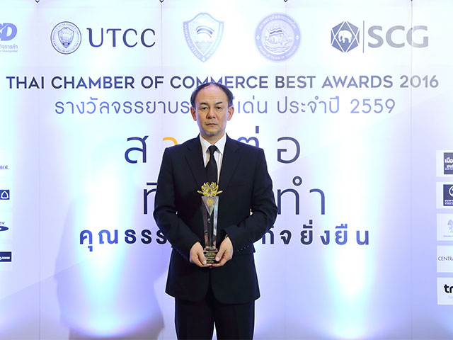 มร.มิจิฮิโระ โออิชิ (คนกลาง) ผู้จัดการใหญ่ด้านการเงิน วางแผน และบริหาร บริษัท ไทยยามาฮ่ามอเตอร์ จำกัด ขึ้นรับรางวัลโล่ประกาศเกียรติคุณธรรมาภิบาลธุรกิจดีเด่นระดับประเทศ ประจำปี 2559 จากกรมพัฒนาธุรกิจการค้า ร่วมกับ หอการค้าไทย และสำนักงานคณะกรรมการป้องกัน และปราบปรามการทุจริตแห่งชาติ โดยมี ศ.นพ.เกษม วัฒนชัย (คนขวา) องคมนตรี และนางสาวบรรจงจิตต์ อังศุสิงห์ (คนซ้าย) อธิบดีกรมพัฒนาธุรกิจการค้า ให้เกียรติมอบรางวัล โดยพิธีมอบรางวัลนี้ จัดขึ้น ณ สำนักงาน คณะกรรมการป้องกัน และปราบปรามการทุจริตแห่งชาติ (ถนนสนามบินน้ำ) ห้องประชุมนนทบุรี 1 จ.นนทบุรี เมื่อเร็วๆ นี้