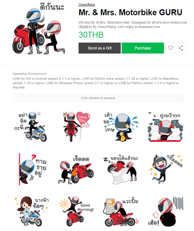 Motorbike GURU Thailand คุณอาจมีสิทธิ์ลุ้นรับ LINE Sticker คู่รักขาซิ่งทั่วราชอาณาจักร ไปใช้เลยฟรีๆ ทันที!! ...ความโชคดีที่พร้อมเสิร์ฟมาให้ อย่ารอช้า!! แจกแค่ 15 ชุด เท่านั้น!! รีบติดตามรายละเอียดกันเลย