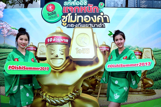 คุณสรวงสุดา มนัสบุญเพิ่มพูล ผู้จัดการทั่วไปฝ่ายสื่อสารการตลาด และประชาสัมพันธ์ บริษัท ไทยยามาฮ่ามอเตอร์ จำกัด ร่วมถ่ายภาพกับ คุณเจษฎากร โคชส์ รองกรรมการผู้จัดการ สายงานธุรกิจเครื่องดื่มบริษัท โออิชิ กรุ๊ป จำกัด (มหาชน) และ พุฒ พุฒิชัย เกษตรสิน ในฐานะที่ยามาฮ่าให้การสนับสนุนแคมเปญ "รหัสโออิชิ แจกหนักซูโม่ทองคำ กองทัพยามาฮ่า" แจกรางวัลรวมมูลค่า 86 ล้านบาท โดยมอบโชคซูโม่ทองคำยักษ์ 10 ล้านบาท รวม 4 รางวัล และรถจักรยานยนต์ยามาฮ่าฟีโน่หัวฉีดใหม่รวม 1,000 คัน เริ่มต้นจับรางวัล ครั้งแรก 9 มีนาคม 2560 นี้ โดยการแถลงข่าวครั้งนี้มีขึ้นที่ ลานกิจกรรมหน้า Hard Rock Cafe สยามสแควร์ เมื่อ 21 กุมภาพันธ์ที่ผ่านมา