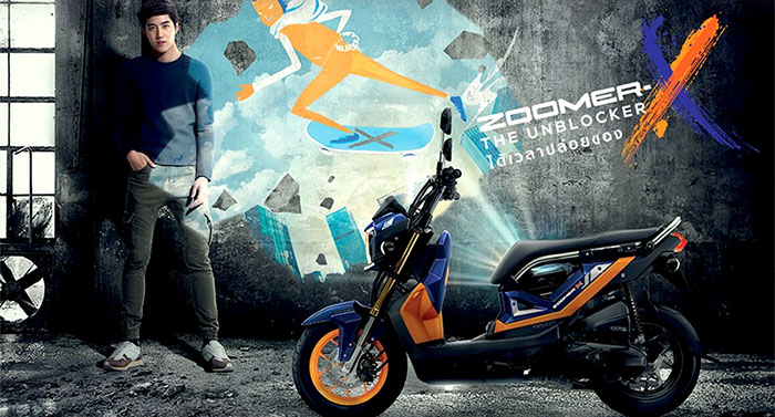 New Zoomer-X ด้วยการออกแบบรถให้มีสีสันที่ต่างออกไปจากเดิม ด้วยคู่สีที่ตัดกันอย่างมีมิติบนตัวรถและล้อรถ ทำให้ New Zoomer-X โดดเด่นตั้งแต่แรกเห็น พร้อมกันนี้ยังได้ดึง ต่อ-ธนภพ ลีรัตนขจร นักแสดงวัยรุ่นระดับแนวหน้าของเมืองไทยมาร่วมถ่ายทอดคาแรกเตอร์ นอกกรอบและสีสันที่ไม่มีวันหมดของคนรุ่นใหม่ในฐานะพรีเซนเตอร์ของ New Zoomer-X