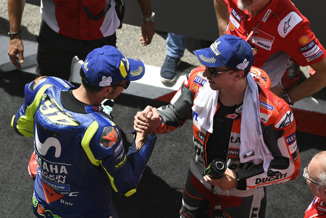 Rossi อดีตเพื่อนร่วมทีม แสดงความยินดีกับชัยชนะครั้งแรกของ Lorenzo ตั้งแต่ย้ายไป Ducati