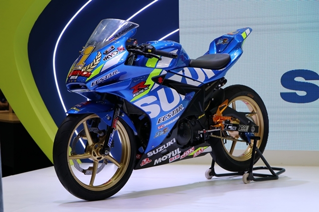โดยในบูธ ซูซูกิ ได้จัดแสดงรถจักรยานยนต์ซูซูกิ ไม่ว่าจะเป็นรถซูเปอร์ไบค์ระดับเวิลด์คลาส อย่าง Suzuki KATANA, Suzuki GSX1300R Hayabusa, Suzuki GSX-R1000R และ Suzuki GSX-R1000 ต่อมาที่รถจักรยานยนต์สไตล์สตรีทสปอร์ต Suzuki GSX-S1000, Suzuki GSX-S1000F, Suzuki GSX-S750, Suzuki SV650X และ Suzuki SV650