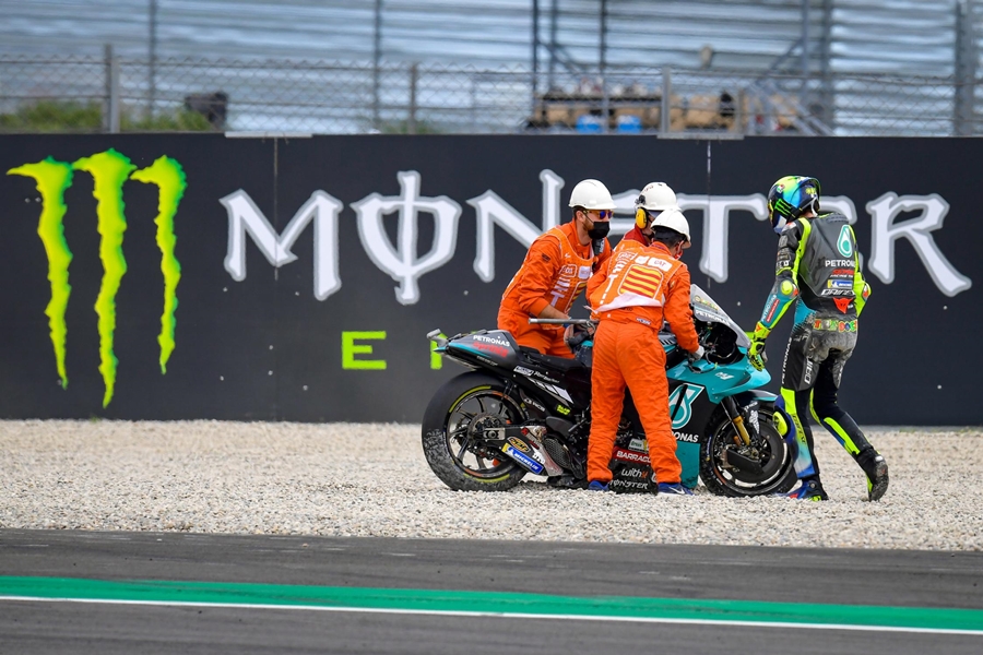 แต่แล้วกลับกลายเป็น Pol Espargaro จาก Repsol Honda Team ที่พลาดล้มไปเป็นคันแรก ในรอบต่อมา Danilo Petrucci จาก Tech 3 KTM Factory Racing ก็พลาดล้มออกไปเป็นรายที่ 2