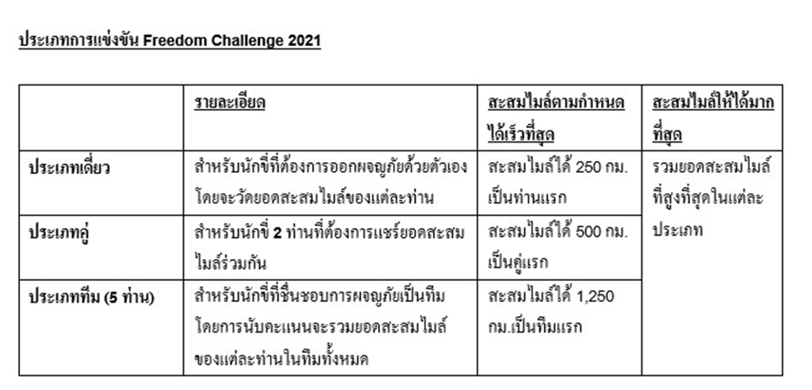 ฮาร์ลีย์-เดวิดสัน เอเชีย ขอเชิญชวนเหล่านักขับขี่จาก ประเทศฮ่องกง อินโดนีเซีย เกาหลี มาเลเซีย ฟิลิปปินส์ สิงคโปร์ ไต้หวัน ไทย และเวียดนาม เข้าร่วมกิจกรรม Harley-Davidson Freedom Challenge 2021 ที่จะเปิดโอกาสให้เหล่านักขี่ฮาร์ลีย์-เดวิดสัน ผู้รักความท้าทายและอิสรภาพ ในแต่ละประเทศ ร่วมกิจกรรมการแข่งขันอันน่าตื่นเต้น พร้อมรับของรางวัลตอบแทนสำหรับนักขับขี่ที่แสวงหาการผจญภัย โดยการแข่งขันในครั้งนี้ จะยังคงเน้นยอดสะสมไมล์ อีกทั้งยังมาพร้อมประเภทของการแข่งขันใหม่ๆ และของรางวัลสุดพิเศษอีกมากมาย
