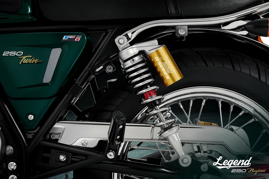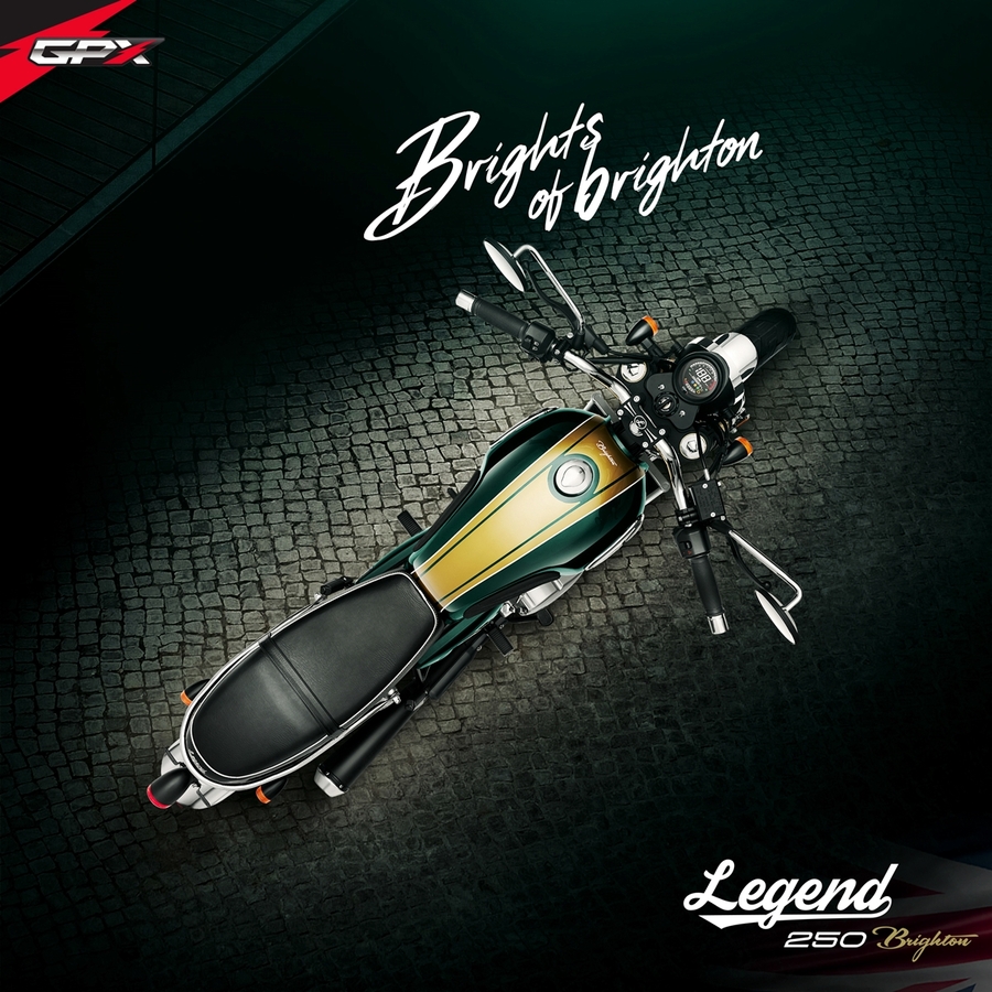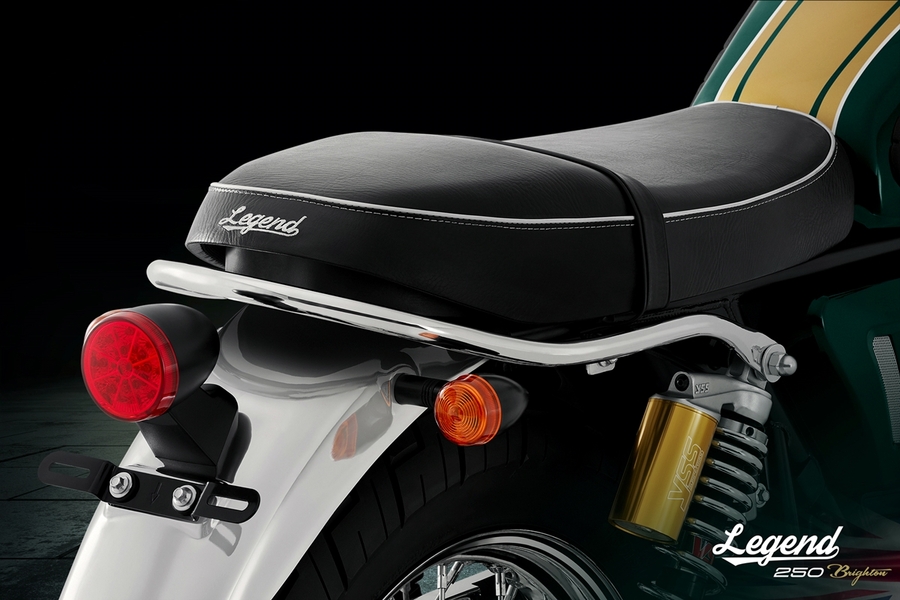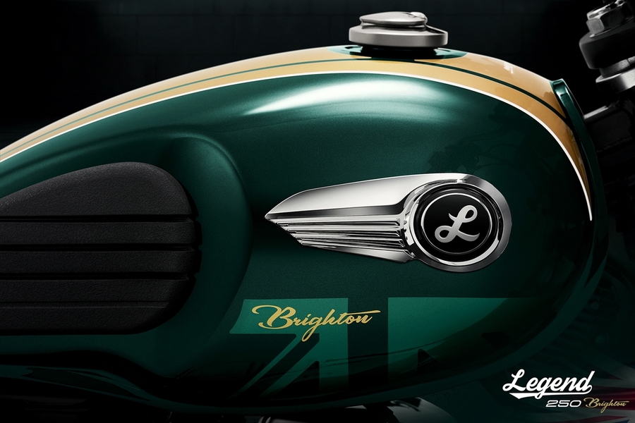 New LEGEND 250 Brighton กับ 2 สีสันใหม่ วงล้อซี่ลวด ให้อารมณ์คลาสสิกมากขึ้นด้วยคอนเซปต์ใหม่ ‘Bright of Brighton’ กับการดีไซน์ลวดลายและสีสันตามแบบฉบับความคลาสสิกจากตำนาน ในกลิ่นอายของบรรยากาศริมชายหาดแห่งประวัติศาสตร์เมืองไบรท์ตัน กับสี British Green และ Deep Blue ที่แฝงความพรีเมียมด้วยประกายสีจากแร่ไมก้า เพิ่มความหรูหราให้กับตัวรถ กับการแมทช์คู่สีที่ตัดกันของสีทองและโครเมียม พร้อมปรับลุคใหม่ให้ดื่มด่ำกับความคลาสสิกมากขึ้นกว่าเดิม ด้วยวงล้อแบบซี่ลวดดีไซน์สีโครเมียม คุณภาพระดับสากลจากแบรนด์ UNION