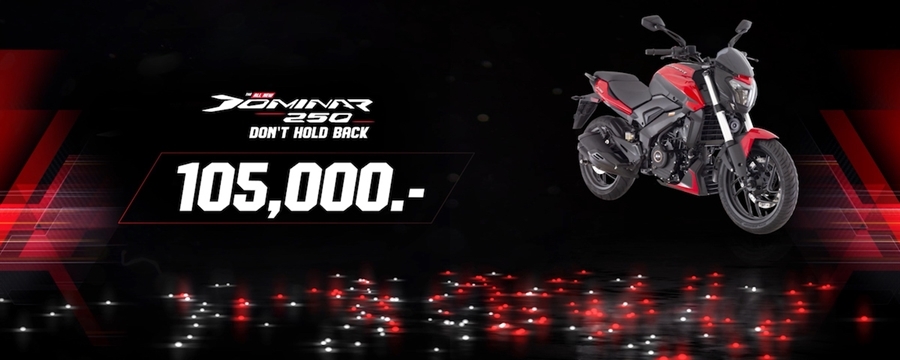Bajaj Dominar 250 พร้อมวางจำหน่ายในประเทศไทยอย่างเป็นทางการแล้วตั้งแต่ วันนี้ ในราคา 105,000 บาท พร้อมการรับประกันตัวรถนาน 3 ปี หรือ 30,000 กม. และ รับประกันระบบหัวฉีด 5 ปี หรือ 50,000 กม. แถมฟรี!! Free Service 3 ปี หรือ 30,000 กม.