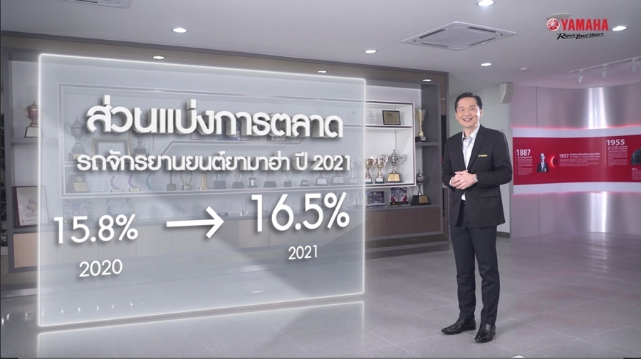 โดยยอดจดทะเบียนรวมปิดตัวเลขอยู่ที่ 1.61 ล้านคัน เติบโตจากปีที่ผ่านมา 6% โดยเป็นยอดจดทะเบียนของรถจักรยานยนต์ยามาฮ่าทั้งสิ้น 266,000 คัน เพิ่มขึ้นถึง 11% เมื่อเทียบกับปี 2563 ซึ่งเป็นอัตราการเติบโต ที่เหนือกว่าภาพรวมของตลาด ทั้งยังสามารถขยับส่วนแบ่งการตลาดเพิ่มขึ้นเป็น 16.5% ซึ่งการเติบโตขึ้นของยามาฮ่าเป็นผลจากการเดินหน้านโยบายด้านการขายและการทำตลาดอย่างเข้มข้นนั่นเอง