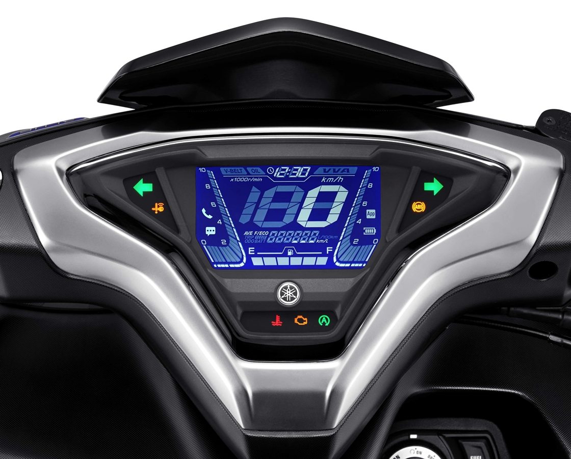 โดดเด่นด้วยดีไซน์สปอร์ตไฟหน้าแบบ Full LED พร้อม Daytime running light สปอร์ตโฉบเฉี่ยว สว่างชัดเจน ส่วนไฟท้าย LED ดีไซน์ใหม่หมด ท้ายสั้นให้อารมณ์ซูเปอร์สปอร์ตพร้อมที่จับกันตกแบบ Build in อีกทั้งยังล้ำสมัยด้วยเรือนไมล์ดิจิทัลแบบ LCD สปอร์ตจัดเร้าใจด้วยกราฟิกแสดงผลวัดรอบ บอกครบทุกฟังก์ชั่น แสดงผลการเชื่อมต่อกับ Y-CONNECT พร้อมสวิตซ์เปลี่ยนโหมดง่ายขึ้นที่แฮนด์ซ้าย และยังเพียบพร้อมด้วยฟังก์ชันการใช้งานมากมายเช่น SMART KEY SYSTEM ระบบกุญแจรีโมทอัจฉริยะ สะดวกสบายในการเปิดหรือปิด สตาร์ทหรือดับเครื่องยนต์ / ปลดล็อกแฮนด์ / ปลดล็อกเบาะ / ปลดล็อกฝาถังน้ำมัน พร้อมสัญญาณ ANSWER BACK, ช่องเสียบต่อชาร์จแบตเตอรี่มือถือ A/C CHARGING SOCKET ป้องกันแบตฯ มือถือหมด ช่วยให้ไม่พลาดทุกการติดต่อ และช่องเก็บของด้านหน้าพร้อมฝาปิด และยังมี MEGA BOX ที่เก็บของใหญ่ ขนาด 25 ลิตร เก็บของได้จุใจ ใส่หมวกกันน็อกแบบเต็มใบได้
