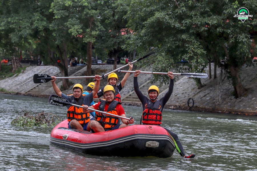 จากนั้นเมื่อเดินทางถึงจังหวัดนครนายกด้วยบรรยากาศที่เย็นสบาย ผู้ร่วมกิจกรรมก็ถูกเติมเต็มความสนุกให้มากยิ่งขึ้น ด้วยกิจกรรมล่องแก่งตลอดเส้นทางน้ำของเขื่อนขุนด่านปราการชล งานนี้เต็มไปด้วยความสนุกสนานสุดเร้าใจจากที่ขี่รถตากลม ก็มาลงน้ำให้สดชื่นสมกับเป็นไฮไลท์ของทริป