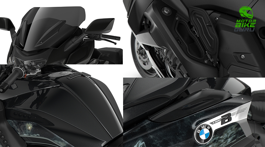 บีเอ็มดับเบิลยู K 1600 B ใหม่ มาในสไตล์โดดเด่นเฉพาะตัวด้วยชุดแต่ง Option 719 Midnight สะกดสายตาด้วยการตกแต่งในคอนเซ็ปต์กาแล็คซี ที่สร้างลวดลายด้วยระบบการพิมพ์แบบ water transfer printing method เสริมความดุดันนุ่มลึก สอดรับกับตัวถังสีดำ