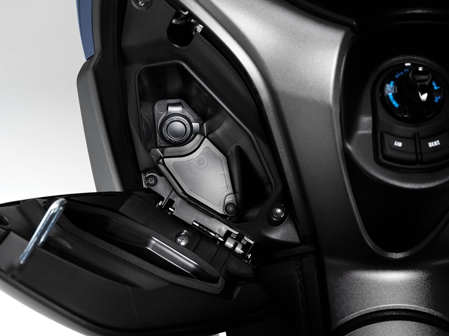 ช่องชาร์จแบตมือถือหรืออุปกรณ์นำทาง ขนาด 12V พร้อมช่องเก็บของด้านหน้า รวมทั้งกุญแจรีโมทอัจฉริยะ SMART KEY SYSTEM ที่สามารถใช้งานทั้งสตาร์ทหรือดับเครื่องยนต์, ปลดล็อกแฮนด์รถ / ปลดล็อกเบาะ / ปลดล็อกฝาปิดถังน้ำมัน และส่งสัญญาณตอบรับ ANSWER BACK
