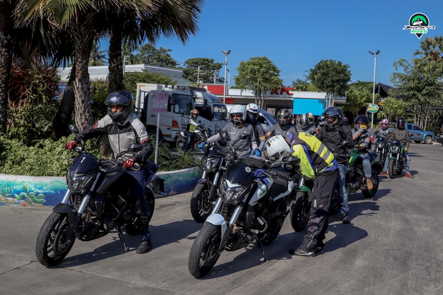 เริ่มต้นกิจกรรมกันที่โชว์รูมบาจาจ หัวหิน กับการบรีฟเส้นทางการเดินทาง ก่อนจะออกเดินทางโดยใช้เส้นเพชรเกษมวิ่งย้อนกลับไปทางจังหวัดราชบุรี