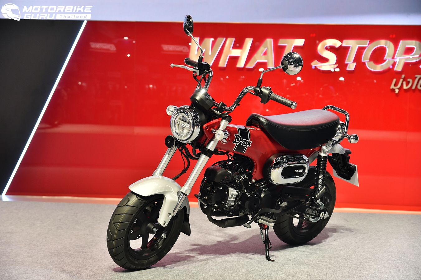 New Dax125 รถ Iconic คันล่าสุดจาก CUB House สำหรับคนที่ชอบความแตกต่าง และชอบใช้ชีวิตเต็มที่กับกลุ่มเพื่อน มาพร้อมคอนเซปต์ “Dax Me Out! วันไหนก็สุดดี…ถ้ามี Dax” ดีไซน์โดดเด่นไม่เหมือนใคร ด้วยเอกลักษณ์ของเฟรม T-Bone ที่เป็นตำนานมาตั้งแต่ปี 1969 สู่ยุคปัจจุบัน สะท้อนคาแรคเตอร์ความสนุกที่มาพร้อมความคล่องตัว บิดสนุกตอบรับทุกความซ่าด้วยเครื่องยนต์ขนาด 125 ซีซี เกียร์วน 4 สปีด โช้กหน้าแบบหัวกลับ ระบบเบรก ABS ที่ล้อหน้า พร้อมดิสก์เบรก หน้า-หลัง มีให้เลือก 2 สี ได้แก่ สีแดง Pearl Nebula Red และสีเทา Pearl Cadet Gray เปิดตัววางจำหน่ายด้วยราคาแนะนำที่ 84,900 บาท