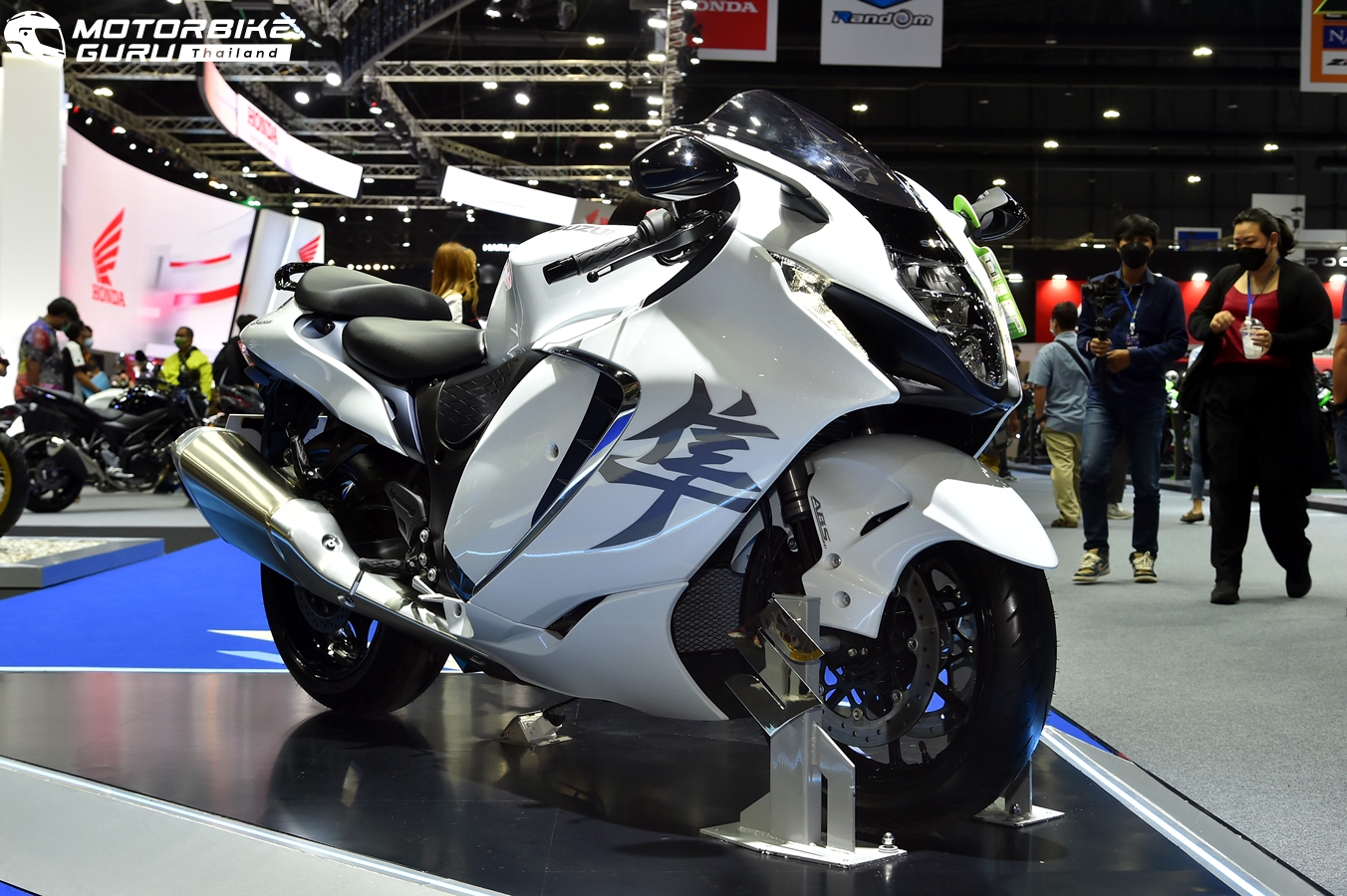 ภายในบูธ ซูซูกิ แบ่งโซนจัดแสดง 5 แอเรีย ได้แก่ Suzuki Sport Area, Suzuki Street Area, Suzuki Adventure Area และ Suzuki Convenience Area พร้อมให้สัมผัสกับความหลากหลาย เช่น All New Suzuki Hayabusa ที่ทำความเร็วถึง 300 กิโลเมตรต่อชั่วโมงครั้งแรกของโลก , Suzuki GSX-R1000R สปอร์ตไบค์ที่ถูกถ่ายทอดเทคโนโลยีโดยตรงมาจาก MotoGP, สกู๊ตเตอร์ระดับพรีเมี่ยม New Suzuki Burgman 400, New Suzuki V-Strom 650XT และรถจักรยานยนต์ครอบครัวสุดประหยัดน้ำมัน New Suzuki Smash Fi