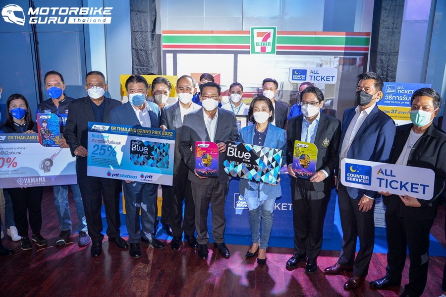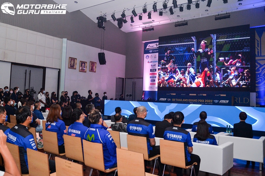 นายภาณุพล กิตติคำรณ รองผู้จัดการใหญ่ด้านการขายและการตลาด, นางสาวบัวทิพย์ จันทร์ดำรงกุล รองผู้จัดการใหญ่ด้านวางแผนการค้า พร้อมด้วยผู้บริหารระดับสูง บริษัท ไทยยามาฮ่ามอเตอร์ จำกัด ถ่ายภาพร่วมกับ นายนภินทร ศรีสรรพางค์ ผู้ช่วยรัฐมนตรีประจำกระทรวงการท่องเที่ยวและกีฬา, ดร.ก้องศักด ยอดมณี ผู้ว่าการ การกีฬาแห่งประเทศไทย, นายเนวิน ชิดชอบ ประธานสนามช้าง อินเตอร์เนชั่นแนล เซอร์กิต ในงานแถลงข่าวความพร้อม ศึกโออาร์ ไทยแลนด์ กรังด์ปรีซ์ 2022 ระหว่างวันที่ 30 กันยายน–2 ตุลาคม 2565 ณ สนามช้าง อินเตอร์เนชั่นแนล เซอร์กิต จ.บุรีรัมย์