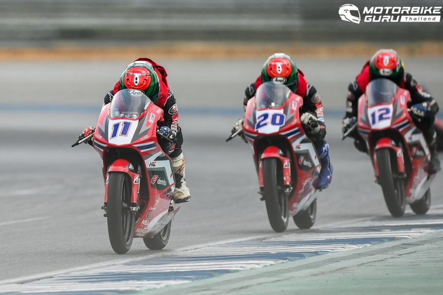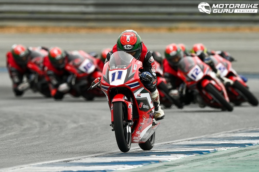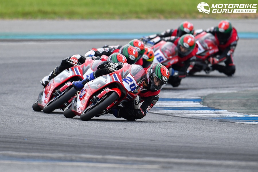 ซึ่งก็เป็น ข้าวกล้อง-จักรีภัทร พฤฒิสาร หมายเลข 20 ที่ออกสตาร์ตจากแถวที่ 3 รีดความเร็วขึ้นมาเป็นผู้นำบ้างในรอบที่ 4 และกลุ่มนำดวลกัอย่างสูสีอีกหลายคันร่วมกับ จิมมี่-บูรพา วันมูล หมายเลข 12, กรดนัย เกิดแก้ว หมายเลข 10, ธนกร หลักหาญ หมายเลข 9, เด็คซ่า อัลเมอร์ อัลฟารีเซล หมายเลข 13 และ โป๊ป-วาติกัน สุขคุ้ม หมายเลข 18
