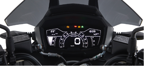 - จอแสดงผล จอชนิด LCD พื้นหลังโทนสีดำเข้มตัดกับตัวอักษรสีขาวให้ความชัดเจนและแสดงค่าต่างๆ ที่จำเป็นอย่างครบถ้วน โดยบริเวณด้านบนจะแสดงไฟเตือนระบบต่าง ๆ