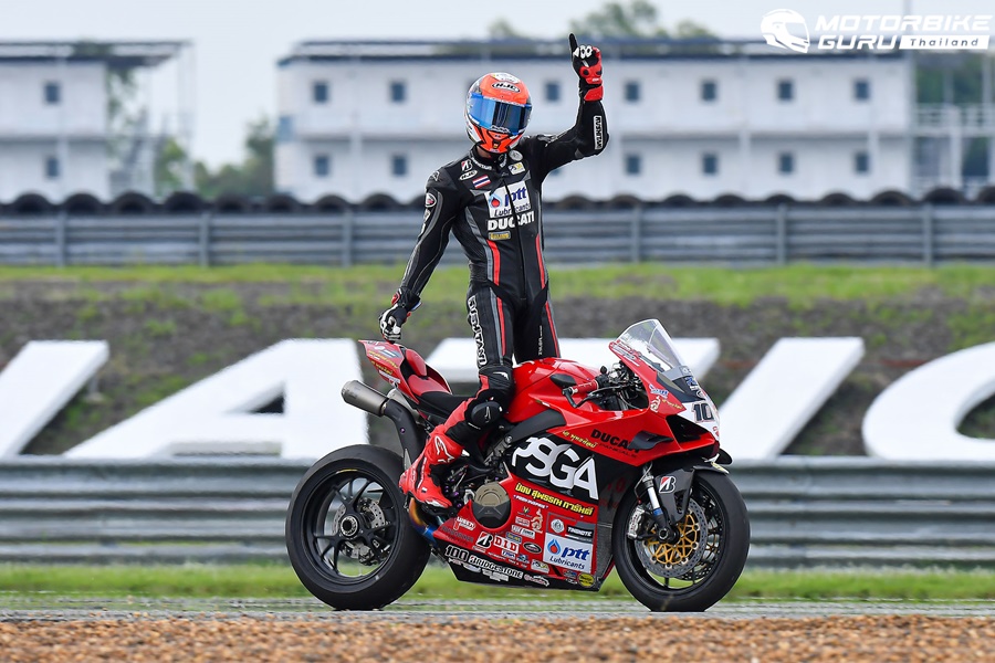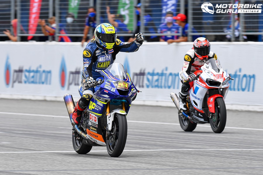 ตามด้วยสองนักบิดเพื่อนร่วมทีม แชมป์-ภาสวิชญ์ และ นิว-กฤชพร คนละ 0.134 วินาที และ 0.466 วินาที ตามลำดับ ส่วน คณาทัต จากจังหวะดังกล่าวทำให้ทำได้เพียงประคองจบเรซในอันดับ 4 ตามหลัง 4.290 วินาที