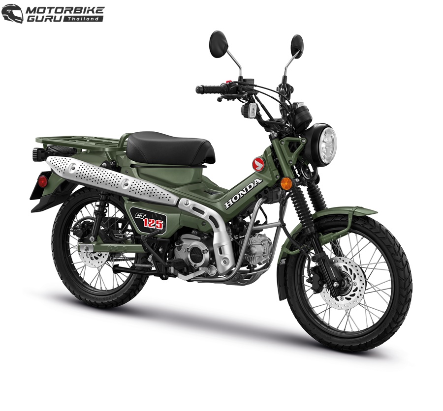 New Honda CT125 มีให้เลือกทั้งหมด 3 สี ได้แก่ สีเทาใหม่, สีแดง (แร็กท้ายสีดำ) และ สีเขียว (แร็กท้ายสีเขียว) วางจำหน่ายด้วยราคาแนะนำที่
