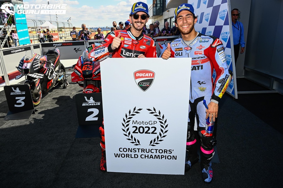 สำหรับสนามถัดไปจะเกิดขึ้นที่ ญี่ปุ่น ที่สนาม Mobility Resort Motegi ในรายการ Motul Grand Prix of Japan เราคงต้องมาลุ้นกันต่อว่าใครจะมีโอกาสคว้าแชมป์ในปีนี้เพราะแต้มเริ่มกลับมาใกล้เคียงกันมากขึ้น แต่สิ่งหนึ่งที่ไม่ต้องลุ้นกันแล้วนั้นก็คือ Ducati นั้นสามารถคว้าแชมป์ประเภทผู้ผลิตไปครองได้แล้วนั่นเอง