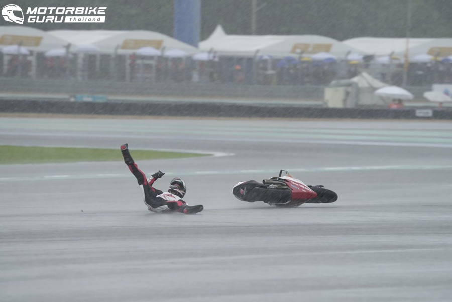 จุดเปลี่ยนของเรซนี้เกิดขึ้นจากฝนที่เทกระหน่ำลงมาอย่างหนักก่อนเริ่มแข่งขันไม่กี่นาที ส่งผลให้กรรมการประกาศเป็น เว็ตเรซ และลดระยะทางลงเหลือ 16 รอบสนาม โดย สมเกียรติ ที่ได้ออกสตาร์ทจากโพลขยับขึ้นนำอย่างรวดเร็ว ขณะที่ เขมินท์ ก็ไต่จากกริดที่ 16 ขึ้นมาเกาะท็อปเท็นได้ตั้งแต่รอบแรกเช่นกัน