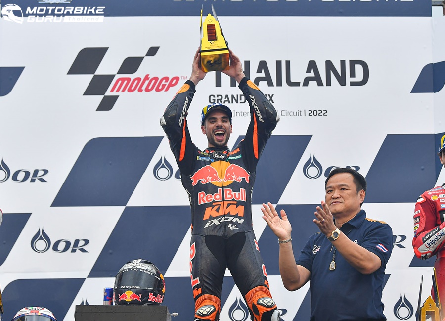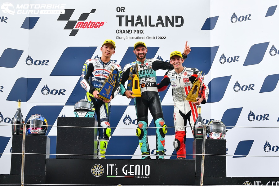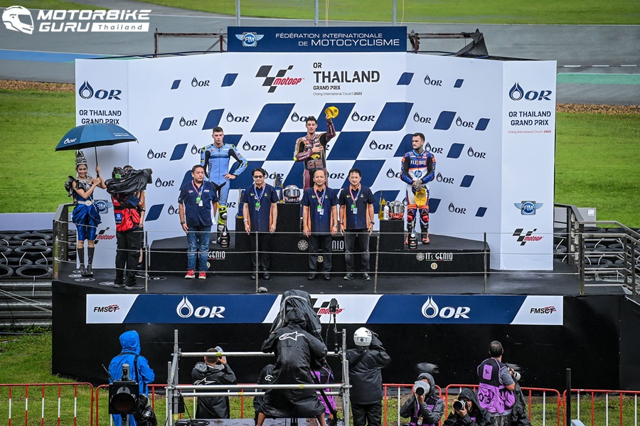 ศึกจักรยานยนต์ทางเรียบรายการใหญ่ที่สุดของโลก โมโตจีพี 2022 สนาม 17 รายการ โออาร์ ไทยแลนด์ กรังด์ปรีซ์ ปิดฉากลงอย่างยิ่งใหญ่ประทับใจแฟนๆ ทั่วโลก ผู้ชมทะลักสู่สนามถึง 178,463 คน อัดแน่นทุกสแตนด์ ภายใต้การลุ้นแชมป์สุดเข้มข้น เกมรุ่นใหญ่ มิเกล โอลิเวียร่า นักบิดโปรตุกีสจาก เรดบูล เคทีเอ็ม แฟ็คตอรี หักปากกาเซียนฝ่าฝนผงาดเป็นผู้ชนะคนใหม่ ส่วน ก้อง-สมเกียรติ จันทรา นักบิดไทยจาก อิเดมิตสึ ฮอนด้า ทีม เอเชีย ขึ้นนำก่อนพลาดล้มดับฝันแฟนชาวไทย ขณะ เคเค-เขมินท์ คูโบะ จาก ยามาฮ่า วีอาร์46 มาสเตอร์ แคมป์ ระเบิดฟอร์มคว้าท็อป 9 ในรุ่น โมโตทู