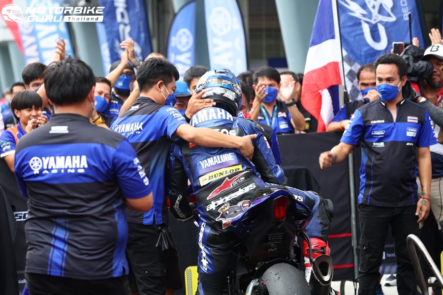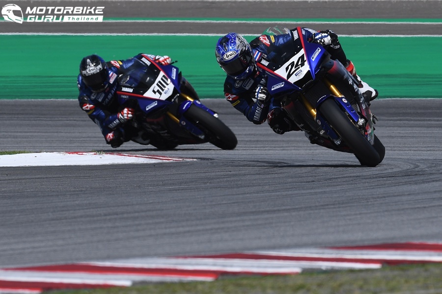 สำหรับการชิงชัยในเรซแรก Yamaha Thailand Racing Team เลือกใช้ยางสลิคลงทำการแข่งขัน หลังมีสายฝนโปรยลงมาก่อนเกม เป็นทางด้าน แสตมป์-อภิวัฒน์ ที่ทะยานจากกริดที่ 3 ขึ้นเป็นผู้นำ รวมถึง ตี-อนุภาพ ที่ขยับจากกริดที่ 10 ขึ้นมารั้งอันดับ 2 ก่อนที่ ทั้งคู่จะทิ้งห่างคู่ออกไปเรื่อยๆ