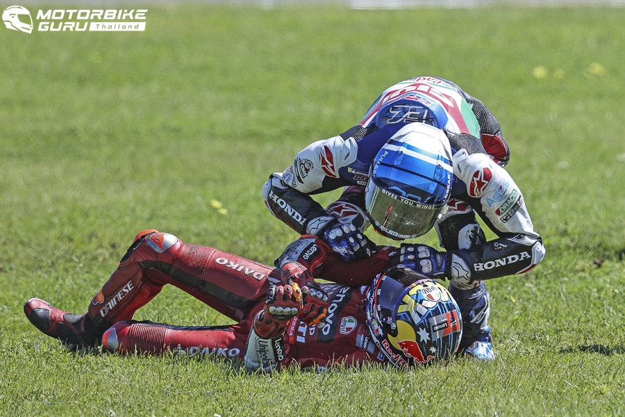 www.facebook.com/HondaRacingTeamTH เคเค-เขมินท์ คูโบะนักบิดไทย สังกัด Yamaha VR46 Master Camp Team อกสตาร์จากตำแหน่งที่ 26 ก่อนจะร่วงไป 1 อันดับ จากนั้น ก็ค่อยๆ ขยับขึ้นมาเรื่อยๆ จนถึงอันดับที่ 22 ก่อนจะพลาดล้มและออกจากการแข่งขันไปอย่างน่าเสียดาย