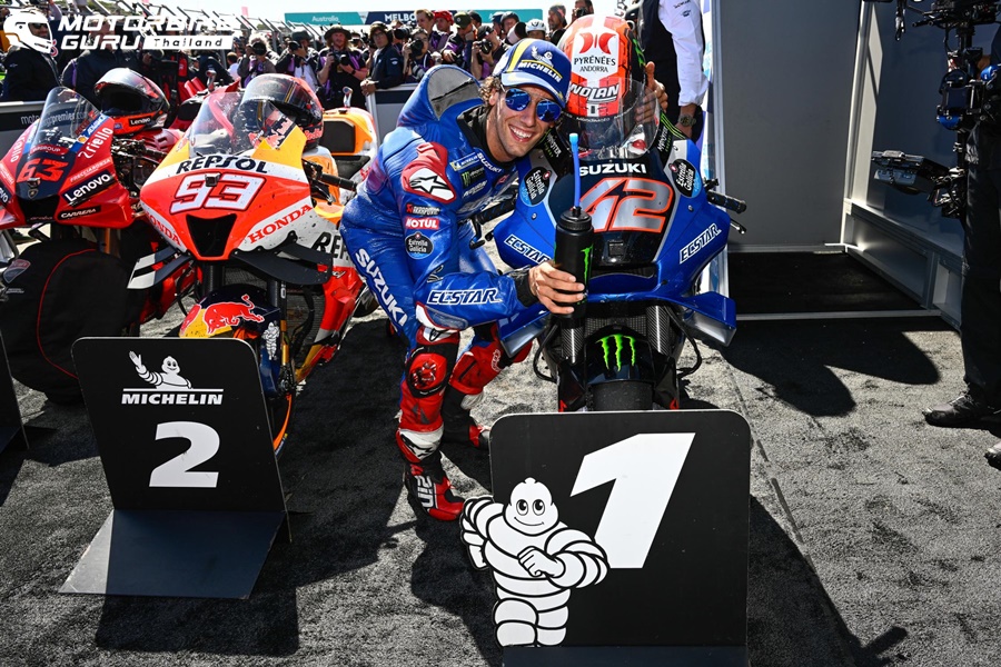 โดย Rins คว้าที่ 1 Marc Marquez เป็นที่ 2 และ Bagnaia เป็นที่ 3